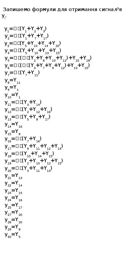Мал.2.5. Спрощена схема формування сигналу Yi. Згідно з наведеними схемами запишемо формули для всіх Yi.