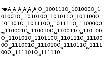 Перерахуємо в таблиці адресації (табл. 4.1) підряд всі послідовності a1-a18 і закодуємо їх R-розрядним кодом. R=]log2N[, N-кількість мікрокоманд(N=46, R=6). Закодуємо також оператори Yi, поставивши їм у відповідність п`ятирозрядний код. У таблиці 4.2 відобразимо вміст керуючої пам'яті, заповнивши поля FX, FY, FA.