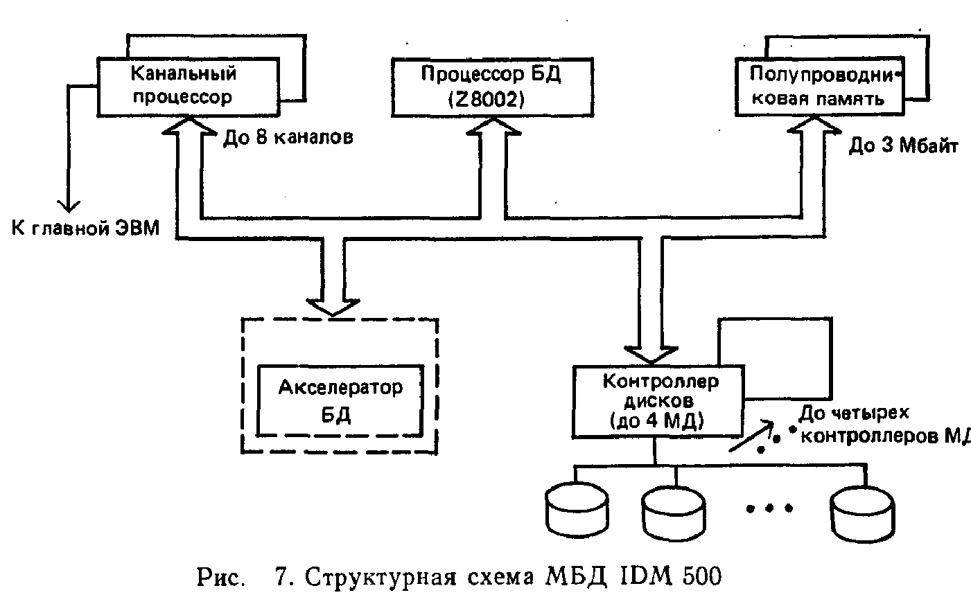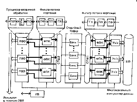 Эти соображения приводят к мысли о необходимости создания специализированных автономных информационных систем, ориентированных исключительно на реализацию функций СУБД. Однако системы, реализованные на обычной универсальной мини- или микроэвм, не способны полностью решить указанные проблемы. Необходим поиск новых архитектурных и аппаратных решений. Исследования в этом направлении привели к появлению-проектов и действующих прототипов машин баз данных, которые наряду с самостоятельным назначением составляют также основу вычислительных систем 5-го поколения. Машиной баз данных (МБД) принято называть аппаратно-программный мультимикропроцессорный комплекс, предназначенный для выполнения всех или некоторых функций СУБД.