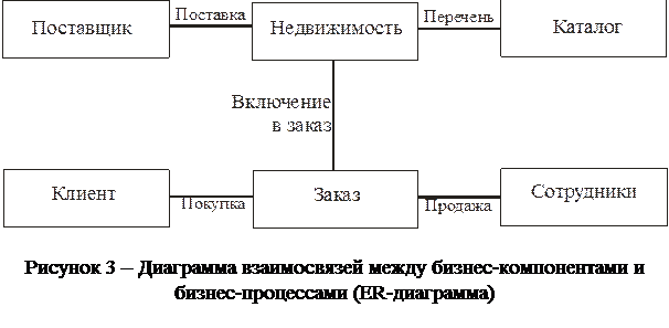 При ответе на вопрос: «Что лежит в основе бизнеса данной фирмы?», как правило, выявляются наиболее важные для данного бизнеса или производственного процесса компоненты. В нашем случае это будут: · сотрудники; · клиенты (покупатели); · фирмы – владельцы; · каталог; · объекты недвижимости; · заказы. Ответы на вопрос: «Как это делается?» позволяют получить список основных бизнес-процессов, происходящих в фирме. Для нашего примера в такой список можно включить следующие пункты: · составление каталога; · рассылка каталога; · анализ рынка; · продажи; · оформление счетов и накладных; · управление работой персонала; · реклама; · решение бухгалтерских задач. Вопрос: «Где происходят данные процессы?» больше относится к проблемам телекоммуникаций и организации совместной работы персонала. Все операции выполняются в пределах одного здания, а организация совместного использования данных основана на возможности доступа к БД всего персонала фирмы «Алла».