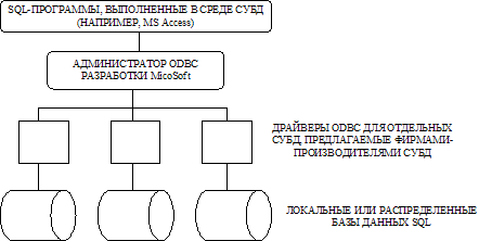 Рис. 2.3. Архитектура ODBC Язык запросов QBE (Query By Example) — это реализация запросов по образцу в виде таблиц. Для определения запроса к БД пользователь должен заполнить предоставленную системой таблицу QBE и определить в ней критерии поиска и выбора данных. Пользователи банков данныхКак любой программно-организационно-технический комплекс, банк данных существует во времени и в пространстве. Он имеет определенные стадии своего развития: 1. Проектирование. 2. Реализация. 3. Эксплуатация. 4. Модернизация и развитие. 5. Полная реорганизация. На каждом этапе своего существования с банком данных связаны разные категории пользователей. Определим основные категории пользователей и их роль в функционировании банка данных: - Конечные пользователи. Это основная категория пользователей, в интересах которых и создается банк данных, В зависимости от особенностей создаваемого банка данных круг его конечных пользователей может существенно различаться. Это могут быть случайные пользователи, обращающиеся к БД время от времени за получением некоторой информации, а могут быть регулярные пользователи. В качестве случайных пользователей могут рассматриваться, например, возможные клиенты вашей фирмы, просматривающие каталог вашей продукции или услуг с обобщенным или подробным описанием того и другого. Регулярными пользователями могут быть ваши сотрудники, работающие со специально разработанными для них программами, которые обеспечивают автоматизацию их деятельности при выполнении своих должностных обязанностей. Например, менеджер, планирующий работу сервисного отдела компьютерной фирмы, имеет в своем распоряжении программу, которая помогает ему планировать и распределять текущие заказы, контролировать ход их выполнения, заказывать на складе необходимые комплектующие для новых заказов. Главный принцип состоит в том, что от конечных пользователей не должно требоваться каких-либо специальных знании в области вычислительной техники и языковых средств. - Администраторы банка данных. Это группа пользователей, которая на начальной стадии разработки банка данных отвечает за его оптимальную организацию с точки зрения одновременной работы множества конечных пользователей, на стадии эксплуатации отвечает за корректность работы данного банка информации и многопользовательском режиме. На стадии развития и реорганизации эта группа пользователей отвечает за возможность корректной реорганизации банка без изменения или прекращения его текущей эксплуатации. - Разработчики и администраторы приложений. Это группа пользователей, которая функционирует во время проектирования, создания и реорганизации банка данных. Администраторы приложений координируют работу разработчиков при разработке конкретного приложения или группы приложений, объединенных в функциональную подсистему. Разработчики конкретных приложений работают с той частью информации из базы данных, которая требуется для конкретного приложения. Не в каждом банке данных могут быть выделены все тины пользователей. Мы уже знаем, что при разработке информационных систем с использованием настольных СУБД администратор банка данных, администратор приложении и разработчик часто существовали в одном лице. Однако при построении современных сложных корпоративных баз данных, которые и