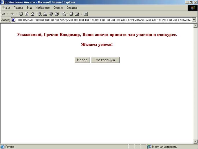 Успешное внесение анкеты в базу данных (itog.cgi):