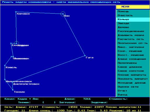 - решить задачу коммивояжера, в результате которой будет получена минимальная связная кольцеобразная сеть;