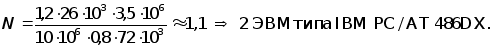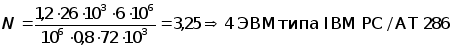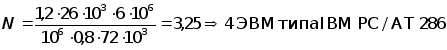 Расчитываем количество ЭВМ для обработки информации: Ка=1,2; еPi=26*103;еQi=6*106; Vэвм=106; Квн=0,8; Тn=72*103.