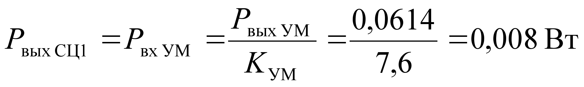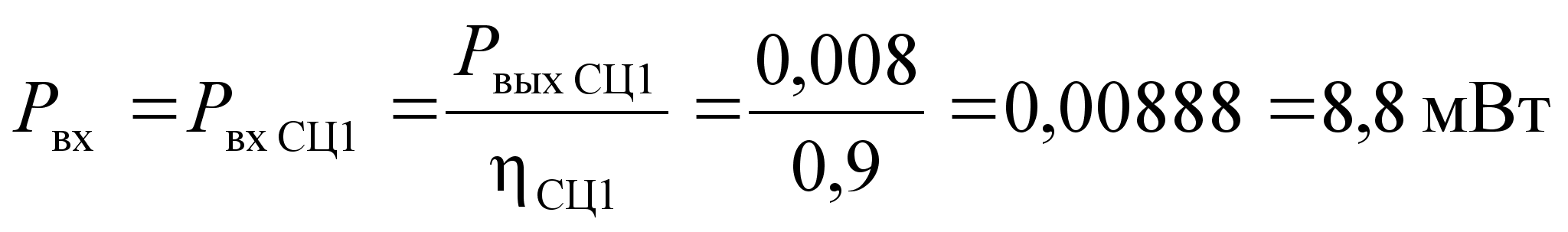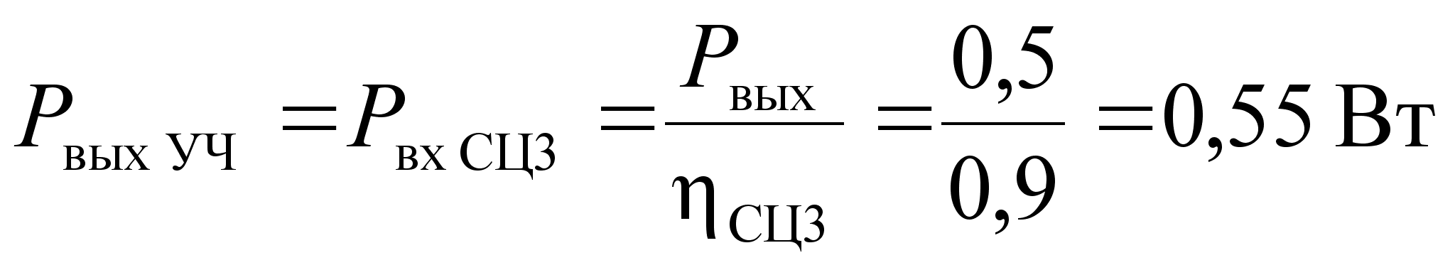 Поскольку мы задали контурный КПД согласующих цепей равным ηк СЦ = 0,9, то мощность на входе СЦ1 Pвх СЦ1 равна: