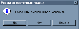 С Во время выхода пользователя из программы или создание нового файла настоек, программа просит ввести подтверждение на одно из следующих действий. Пользователь должен выбрать: сохранить файл настроек config.pol - нажать копку "Да", не сохранять файл настроек config.pol - нажать кнопку "Нет", продолжить редактирование идентификаторов доступа - нажать кнопку "Отмена".