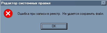 С Пользователь должен нажать на кнопку "ОК" и заново ввести путь для сохранения файлу config.pol. Если сообщение повториться, то это означает что файл config.pol защищен от записи или у пользователя нет полномочий на запись файла в указанный каталог.