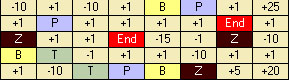 Private Sub Color_Chars() If field(i, j) = 0 Then Label56.Caption = "+1" If field(i, j) = 0 Then Label56.BackColor = &HBBECF4 If field(i, j) = 0 Then Label56.ForeColor = &H80000008 If field(i, j) = 1 Then Label56.Caption = "-1" If field(i, j) = 1 Then Label56.BackColor = &HBBECF4 If field(i, j) = 1 Then Label56.ForeColor = &H80000008 If field(i, j) = 2 Then Label56.Caption = "+5" If field(i, j) = 2 Then Label56.BackColor = &HBBECF4 If field(i, j) = 2 Then Label56.ForeColor = &H80000008 If field(i, j) = 3 Then Label56.Caption = "-5" If field(i, j) = 3 Then Label56.BackColor = &HBBECF4 If field(i, j) = 3 Then Label56.ForeColor = &H80000008 If field(i, j) = 4 Then Label56.Caption = "+10" If field(i, j) = 4 Then Label56.BackColor = &HBBECF4 If field(i, j) = 4 Then Label56.ForeColor = &H80000008 If field(i, j) = 5 Then Label56.Caption = "-10" If field(i, j) = 5 Then Label56.BackColor = &HBBECF4 If field(i, j) = 5 Then Label56.ForeColor = &H80000008 If field(i, j) = 6 Then Label56.Caption = "+15" If field(i, j) = 6 Then Label56.BackColor = &HBBECF4 If field(i, j) = 6 Then Label56.ForeColor = &H80000008 If field(i, j) = 7 Then Label56.Caption = "-15" If field(i, j) = 7 Then Label56.BackColor = &HBBECF4 If field(i, j) = 7 Then Label56.ForeColor = &H80000008 If field(i, j) = 8 Then Label56.Caption = "+25" If field(i, j) = 8 Then Label56.BackColor = &HBBECF4 If field(i, j) = 8 Then Label56.ForeColor = &H80000008 If field(i, j) = 9 Then Label56.Caption = "T" If field(i, j) = 9 Then Label56.BackColor = &HABCFBB If field(i, j) = 9 Then Label56.ForeColor = &H80000008 If field(i, j) = 10 Then Label56.Caption = "P" If field(i, j) = 10 Then Label56.BackColor = &HFFC0C0 If field(i, j) = 10 Then Label56.ForeColor = &H80000008 If field(i, j) = 11 Then Label56.Caption = "B" If field(i, j) = 11 Then Label56.BackColor = &H80FFFF If field(i, j) = 11 Then Label56.ForeColor = &H80000008 If field(i, j) = 12 Then Label56.Caption = "Z" If field(i, j) = 12 Then Label56.BackColor = &H40& If field(i, j) = 12 Then Label56.ForeColor = &HFFFFFF If field(i, j) = 13 Then Label56.Caption = "Z" If field(i, j) = 13 Then Label56.BackColor = &H40& If field(i, j) = 13 Then Label56.ForeColor = &HFFFFFF If field(i, j) = 14 Then Label56.Caption = "End" If field(i, j) = 14 Then Label56.BackColor = &HFF& If field(i, j) = 14 Then Label56.ForeColor = &HFFFFFF If field(i, j) = 15 Then Label56.Caption = "-10" If field(i, j) = 15 Then Label56.BackColor = &HBBECF4 If field(i, j) = 15 Then Label56.ForeColor = &H80000008 If field(i, j) = 16 Then Label56.Caption = "-5" If field(i, j) = 16 Then Label56.BackColor = &HBBECF4 If field(i, j) = 16 Then Label56.ForeColor = &H80000008 If field(i, j) = 17 Then Label56.Caption = "-1" If field(i, j) = 17 Then Label56.BackColor = &HBBECF4 If field(i, j) = 17 Then Label56.ForeColor = &H80000008 If field(i, j) = 18 Then Label56.Caption = "+1" If field(i, j) = 18 Then Label56.BackColor = &HBBECF4 If field(i, j) = 18 Then Label56.ForeColor = &H80000008 If field(i, j) = 19 Then Label56.Caption = "+5" If field(i, j) = 19 Then Label56.BackColor = &HBBECF4 If field(i, j) = 19 Then Label56.ForeColor = &H80000008 End Sub Теперь добавим копирование значения и атрибутов ячейки Label56 в ячейку игрового поля и используем несколько циклов для обработки всего массива field(8, 6): - пример копирования Label7.Caption = Label56.Caption Label7.BackColor = Label56.BackColor Label7.ForeColor = Label56.ForeColor В итоге появится процедура Sub Field_Fill() копирования номиналов из «дежурной» ячейки Label56, а процедура Color_Chars() изменится следующим образом: Private Sub Color_Chars() If field(i, j) = 0 Then Label56.Caption = "+1" If field(i, j) = 0 Then Label56.BackColor = &HBBECF4 If field(i, j) = 0 Then Label56.ForeColor = &H80000008 If field(i, j) = 1 Then Label56.Caption = "-1" If field(i, j) = 1 Then Label56.BackColor = &HBBECF4 If field(i, j) = 1 Then Label56.ForeColor = &H80000008 If field(i, j) = 2 Then Label56.Caption = "+5" If field(i, j) = 2 Then Label56.BackColor = &HBBECF4 If field(i, j) = 2 Then Label56.ForeColor = &H80000008 If field(i, j) = 3 Then Label56.Caption = "-5" If field(i, j) = 3 Then Label56.BackColor = &HBBECF4 If field(i, j) = 3 Then Label56.ForeColor = &H80000008 If field(i, j) = 4 Then Label56.Caption = "+10" If field(i, j) = 4 Then Label56.BackColor = &HBBECF4 If field(i, j) = 4 Then Label56.ForeColor = &H80000008 If field(i, j) = 5 Then Label56.Caption = "-10" If field(i, j) = 5 Then Label56.BackColor = &HBBECF4 If field(i, j) = 5 Then Label56.ForeColor = &H80000008 If field(i, j) = 6 Then Label56.Caption = "+15" If field(i, j) = 6 Then Label56.BackColor = &HBBECF4 If field(i, j) = 6 Then Label56.ForeColor = &H80000008 If field(i, j) = 7 Then Label56.Caption = "-15" If field(i, j) = 7 Then Label56.BackColor = &HBBECF4 If field(i, j) = 7 Then Label56.ForeColor = &H80000008 If field(i, j) = 8 Then Label56.Caption = "+25" If field(i, j) = 8 Then Label56.BackColor = &HBBECF4 If field(i, j) = 8 Then Label56.ForeColor = &H80000008 If field(i, j) = 9 Then Label56.Caption = "T" If field(i, j) = 9 Then Label56.BackColor = &HABCFBB If field(i, j) = 9 Then Label56.ForeColor = &H80000008 If field(i, j) = 10 Then Label56.Caption = "P" If field(i, j) = 10 Then Label56.BackColor = &HFFC0C0 If field(i, j) = 10 Then Label56.ForeColor = &H80000008 If field(i, j) = 11 Then Label56.Caption = "B" If field(i, j) = 11 Then Label56.BackColor = &H80FFFF If field(i, j) = 11 Then Label56.ForeColor = &H80000008 If field(i, j) = 12 Then Label56.Caption = "Z" If field(i, j) = 12 Then Label56.BackColor = &H40& If field(i, j) = 12 Then Label56.ForeColor = &HFFFFFF If field(i, j) = 13 Then Label56.Caption = "Z" If field(i, j) = 13 Then Label56.BackColor = &H40& If field(i, j) = 13 Then Label56.ForeCo