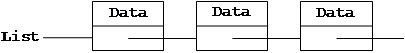 Вернёмся теперь к вопросу об экономии памяти при хранении табличных данных. С использованием указателей можно отказаться от массива и использовать динамические структуры. Самой простой из них является список, который схематично изображается так: Прямоугольники на этой схеме – динамические переменные типа запись, Data – поле (или поля), содержащие полезную информацию (например фамилии и номера телефонов), поле, которое изображено ниже Data – это указатель на следующую запись. Переменная List также является указателем на запись. Жирная точка в поле «следующий элемент» в самой последней записи означает, что там лежит значение nil, чтобы показать, что эта запись – последняя в списке. Для описания списка на Паскале достаточно описать тип указателя на запись и тип самой записи. Выглядит всё это так: type tItemPtr = ^tItem; {указатель на элемент} tItem = record Data: tData; {полезные данные} Next: tItemPtr; {указатель на следующий элемент списка} end; В первой строке этого объявления бросается в глаза использование неопределённого типа tItem. Такое исключение из правил в Турбо Паскале сделано умышленно, в противном случае не было бы возможности строить списки и другие связанные структуры из динамических переменных. Объявить сам список можно как указатель на элемент: var List : tItemPtr; пока наш список пуст, в List следует положить значение nil. При создании первого элемента будем выполнять действия New(List); List^.Next:=nil. В списках всегда хранится ровно столько элементов, сколько нужно; если какой-либо элемент данных потерял свою ценность, то его всегда можно удалить из списка; если появились новые данные, то можно добавить новый элемент. Напишем теперь модуль для работы со списками. В нём содержатся процедуры первоначальной подготовки списка; добавления элемента в начало списка; удаления элемента, следующего за указанным; нахождения элемента с заданным номером; подсчета элементов и очистки списка. unit Lists; interface type tData = record Name: string[50]; Phone: longint; end; tItemPtr = ^tItem; tItem = record Data: tData; Next: tItemPtr; end; procedure InitList(var l: tItemPtr); procedure AddItemToHead(var l: tItemPtr; d: tData); function DeleteItemAfter(var l: tItemPtr; num: word): boolean; function Count(l: tItemPtr): word; function GetItem(l: tItemPtr; num: word; var d: tData): boolean; procedure ClearList(var l: tItemPtr); {---------------------------------------------------------------} implementation procedure InitList(var l: tItemPtr); begin l:=nil end; procedure AddItemToHead(var l: tItemPtr; d: tData); var p: tItemPtr; begin new(p); p^.data:=d; p^.next:=l; l:=p; end; function DeleteItemAfter(var l: tItemPtr; num: word): boolean; var p,q: tItemPtr; i: word; begin i:=1; p:=l; while (i<>num)and(p<>nil) do begin i:=i+1; p:=p^.next; end; if p<>nil then begin if p^.next<>nil then begin q:=p^.next^.next; dispose(p^.next); p^.next:=q; DeleteItemAfter:=true; end else DeleteItemAfter:=false; {не удалён} end else DeleteItemAfter:=false; end; function Count(l: tItemPtr): word; var p: tItemPtr; i: word; begin i:=0; p:=l; while p<>nil do begin i:=i+1; p:=p^.next; end; count:=i; end; function GetItem(l: tItemPtr; num: word; var d: tData): boolean; var p: tItemPtr; i: word; begin i:=1; p:=l; while (i<>num)and(p<>nil) do begin i:=i+1; p:=p^.next; end; if p<>nil then begin d:=p^.data; GetItem:=true; end else GetItem:=false; end; procedure ClearList(var l: tItemPtr); var p: tItemPtr; begin while (l<>nil) do begin p:=l^.next; dispose(l); l:=p; end; end; end. Лекция 16. Динамические переменные: другие виды списков, стек и очередь.1. Другие виды списковКроме рассмотренных списков возможны более сложные варианты, связанные с наличием двух дополнительных свойств: 1. Двунаправленность списка. В каждом элементе таких списков есть не только указатель на следующий элемент, но и на предыдущий. Такая организация может оказаться полезной при добавлении или удалении элемента, предшествующего указанному. 2. Замкнутость списка. Поле next в последнем элементе указывает на первый элемент. Иначе такие списки н
