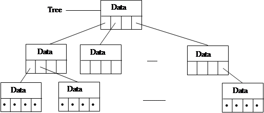 Деревьями называются структуры данных следующего вида: Элементы дерева называются вершинами. Вершина Tree^ называется корнем дерева, а всё множество вершин, связанных с некоторой вершиной с помощью одного из указателей называется поддеревом. Вершины, у которых все указатели равны nil, иногда называют листьями. Подробнее мы рассмотрим вариант двоичного дерева, то есть такого, в котором каждая вершина имеет два поддерева (любое из них может оказаться пустым). Такие деревья оказываются очень удобными для решения задачи поиска, когда ключи для наших данных (например фамилии при поиске телефонных номеров) можно сравнивать на "=", "<" и ">". В каждую вершину дерева заносится элемент данных, причём делается это таким образом, чтобы для любой вершины все ключи данных (или сами данные в простейшем случае) из левого поддерева были меньше ключа этой вершины, а все ключи из правого – больше. Выполнения такого требования можно достигнуть при последовательном добавлении элементов (то есть построении дерева, начиная с «нуля», точнее с nil). При описанном построении дерева поиск оказывается довольно простым делом: сначала мы сравниваем искомый ключ с ключом корня дерева. Если эти два ключа совпадают, то элемент найден, в противном случае выполняем поиск в левом поддереве, иначе – в правом, далее в выбранном поддереве вновь выполняем сравнение его корня с искомым ключом, и т. д. Этот процесс закончится либо когда мы нашли ключ, либо когда очередное поддерево оказалось пустым (это означает, что такой ключ в дереве отсутствует). Для реализации двоичного дерева сначала рассмотрим его описание на Паскале: type tNodePtr = ^tNode; {указатель на вершину} tNode = record data: tMyData; left,right: tNodePtr; end; tTree = tNodePtr; {для доступа к дереву достаточно хранить указатель на его корень} Под данными (tMyData) будем понимать запись, состоящую из ключа, необходимого для сравнений, и собственно данных: type tMyData = record key: tKey; data: tData; end; Для того чтобы реализовать действия с двоичным дерево, нам понадобятся так называемые рекурсивные процедуры. Функция или процедура называется рекурсивной, если она вызывает сама себя. Такой вариант рекурсии называется прямым. Кроме того, бывает и косвенная рекурсия, когда одна процедура вызывает другую, а та в свою очередь вызывает первую. В качестве примера рассмотрим функцию для вычисления факториала, в которой мы заменим цикл (или итерацию) рекурсией. Её идея проста: если аргумент равен нулю, то возвращаем значение 1, в противном случае возвращаем значение аргумента, умноженное на факториал (то есть ту же функцию) от числа, на единицу меньшего. На Паскале всё это будет выглядеть следующим образом: function factorial(x: byte): longint; begin if x=0 then factorial:=1 else factorial:=x*factorial(x-1); end; Подобным образом можно применить рекурсию для вычисления n-го числа Фибоначчи, хотя этот способ требует много лишних действий: function fib(n: integer): integer; begin if n<=1 then fib:=1 else fib:=fib(n-1)+fib(n-2); end; Косвенная рекурсия может появиться, например при проверке правильности арифметических выражений. Подробно рассматривать этот вопрос сейчас мы не будем. Возвращаясь к деревьям, заметим, что добавление элемента является рекурсивной процедурой: procedure InsertNode(t: tTree; key: tKey; data: tData); begin if t=nil then begin new(t); t^.key:=key; t^.data:=data; end else if key<t^.key then InsertNode(t^.left,key,data) else InsertNode(t^.right,key,data); end; После того как дерево построено, можно выполнять поиск (также рекурсивный): function Search(t: tree;