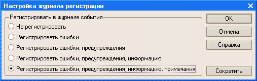 Кроме этого, журнал регистрации поддерживает динамическую фильтрацию событий, при которой новые события, удовлетворяющие наложенному фильтру, будут появляться в списке. Существует возможность настройки уровня событий, отображаемых в журнале регистрации: