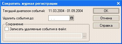 Кроме этого разработчик может самостоятельно добавлять записи в журнал регистрации, используя средства встроенного языка. Такая возможность позволяет настраивать журнал регистрации под нужды конкретного прикладного решения. В процессе длительной эксплуатации системы в журнале регистрации может накапливаться значительное число записей. Поэтому поддерживается возможность сокращения журнала регистрации и удаления записей, ставших неактуальными. При сокращении журнала регистрации можно записать удаляемые события в файл, если предвидится необходимость их анализа в будущем: