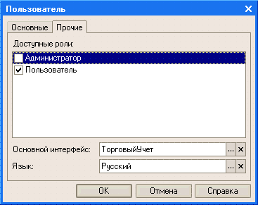 роли, которые будут доступны пользователю при работе с прикладным решением, а