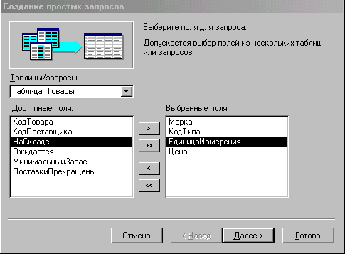Мал. 4. Створення простого запиту Якщо необхідно, вказати додаткові таблиці або запит, а потім вибрати з них поля, які повинні бути використані.