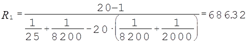 Определим сопротивление резистора где: Определим значение Из ряда номинальных сопротивлений выбираем значение номинала равное 8200 Ом. Мощность