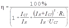 Вычислим КПД источника опорного напряжения в номинальном режиме: Вычислим изменение напряжения стабилизации за счет изменения температуры