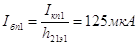 Наносим рассчитанное значение тока коллектора на график и определяем точное значение h21э . Точно рассчитываем ток коллектора: