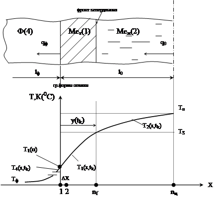Удельная теплота кристаллизации L(Дж/кг) выделяется только на фронте затвердевания (nf) - условие Стефана;