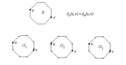 Рисунок 4.1 Построение Ti+1. Осталось показать, что для всех w Î Vi+1 , (уникальный) путь от w к d в Ti+1 - оптимальный путь от w к d в G. Для вершин w Î Vi Ì Vi+1 это следует, потому что Ti поддерево Ti+1 ; путь от w к d в Ti+1 точно такой же, как путь в Ti, который оптимален. Теперь пусть w = uj, j < l будет вершиной в Vi+1 \V,. Запишем Q для пути от ui к d в Ti, тогда в Ti+1 uj соединена с d через путь <uj, . . . , ul> соединенный с Q, и осталось показать, что этот путь оптимальный в G. Во-первых, суффикс P' = <ul, . . . , uk> в P оптимальный путь от ul до d, т.е., C(P') = C(Q): оптимальность Q подразумевает что C(P') ³C(Q), и C(Q)< C(P') подразумевает (добавлением стоимости пути) что путь <uo, . . . , ul> соединен с Q имеющий меньший путь, чем P, противоречащий оптимальности P. Теперь положим, что R из uj к d имеет меньшую стоимость, чем путь <uj, . . . , ul> соединенный с Q. Тогда, по предыдущим наблюдениям, R имеет меньшую стоимость, чем суффикс <uj, . . . , uk> P, и это предполагает что путь <uo, . . . , uj> соединенный с R имеет меньшую стоимость, чем P, противоречащий оптимальности P. Дерево охвата, приложенное к d , называется деревом стока для d, и дерево со свойством, данным в Теореме 4.2 , называется оптимальным деревом стока. Существование оптимальных деревьев стока не является компромиссом оптимальности, если только алгоритмы маршрутизации рассматриваются, для которого механизм пересылки, как в Алгоритме 4.2. В этом алгоритме, table_lookupu локальная процедура с одним параметром, возвращая соседа u (после консультации с таблицами маршрутизации). Действительно, поскольку все пакеты для адресата d могут быть направлены оптимально используя дерево обхвата, приложенное к d, пересылка оптимальна, если, для всего u¹d, table_lookupu(d) возвращает отца u в дереве охвата Td. Когда механизм пересылки имеет эту форму, и никакие (дальнейшие) изменения топологии не происходят, корректность таблиц маршрутизации может быть удостоверена, используя следующий результат. Таблицы маршрутизации, как говорят, содержат цикл (для адресата d), если существуют узлы u1, . . . , uk такие, что для всех i , ui ¹d, для всех i < k, table_lookupu(d) = ui+1, и table_lookupu(d) = uj+1.. Таблицы, как говорят, являются свободным от циклов, если они не содержат циклов для любого d.