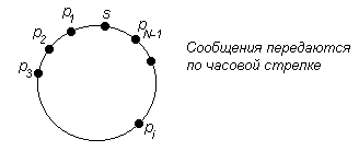 c’Pi, …, cPN), для которых (cPi , c’Pi ) Î ^iPi ; · àPiPj это множество пар (…, cPi, …, cPj , …), (…, c’Pi, …, c’Pj , …), для которых существует сообщение m Î M такое, что (cPi , m, c’Pi ) Î ^sPi и (cPj , m, c’Pj ) Î ^rPj . (3) I = {(cP1, …, cPN) : ("p Î P : cp Î Ip)}. Некоторые распределенные системы допускают гибридные формы коммуникации; процессы в них имеют коммуникационные примитивы для передачи сообщений как в синхронном так и в асинхронном стиле. Имея две модели, определенные выше, нетрудно разработать формальную модель для этого типа распределенных систем. Конфигурации такой системы включают состояния процессов и набор сообщений в процессе передачи (а именно, асинхронных сообщений). Переходы включают все типы переходов представленных в определениях 2.6 и 2.7. Синхронизм и его влияние на алгоритмы. Уже было замечено, что во многих случаях синхронная передача сообщений может рассматриваться как специальный случай асинхронной передачи сообщений. Набор исполнений ограничен в случае синхронной передачи сообщений исполнениями, где за каждым событием отправки немедленно следует соответствующее событие приема [CBMT92]. Мы поэтому рассматриваем асинхронную передачу сообщений как более общую модель, и будем разрабатывать алгоритмы в основном для этого общего случая. Однако, нужно быть внимательным, когда алгоритм, разработанный для асинхронной передачи сообщений исполняется в системе с синхронной передачей сообщений. Пониженный недетерминизм в коммуникационной системе должен быть сбалансирован повышенным недетерминизмом в процессах, в противном случае результатом всего этого может стать тупик. Мы проиллюстрируем это элементарным примером, в котором два процесса посылают друг другу некоторую информацию. В асинхронном случае, каждый процесс может сначала послать сообщение и впоследствии получает сообщение от другого процесса. Сообщения временно накапливаются в коммуникационной подсистеме между их отправкой и посылкой. В синхронном случае, такого накапливания невозможно, и если оба процесса должны послать их собственные сообщения перед тем как они могут получить сообщение, то никакой передачи вообще не будет. В синхронном случае, один из процессов должен получить сообщение перед тем как другой процесс отправит свое собственное сообщение. Нет нужды говорить, что, если оба процесса должны получить сообщение перед отправкой их собственных сообщений, опять же не будет никакой передачи. Обмен двумя сообщениями будет иметь место в синхронном случае, только если одно из двух нижеследующих условий выполняется. (1) Заранее определено, какой из двух процессов будет отправлять первым, и какой процесс будет первым получать. Во многих случаях невозможно сделать такой выбор заранее, потому что это потребует выполнения различных локальных алгоритмов в процессах. (2) Процессы имеют право недетерминированного выбора либо отправлять сначала, потом принимать, либо получать сначала, потом – посылать. В каждом исполнении один из возможных порядков исполнения будет выбран для каждого процесса, т.е. симметрия нарушается коммуникационной системой. Когда мы представляем алгоритм для асинхронной передачи сообщений и утверждаем, что алгоритм может также использоваться при синхронной передаче сообщений, добавление этого недетерминизма, который всегда возможен, предполагается неявно. В некото