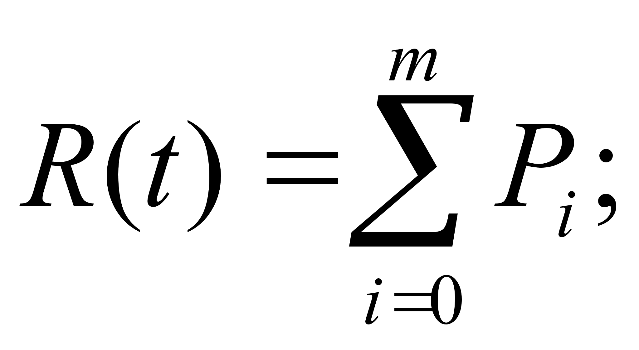 где первая скобка соответствует тому, что (N-i) элементов находятся в работоспособном состоянии, а вторая тому, что i элементов отказали. Подставляя (3) в (2) можно получить выражение для вычисления вероятностей Pi. Очевидно, что для системы ОС-N(m) (N узловой системы с рангом отказоустойчивости m) все состояния системы, входящие в группы 0,1,2,…m относятся к тем состояниям, в которых система нормально функционирует. В этой связи вероятность R(t) можно оценить следующим образом: