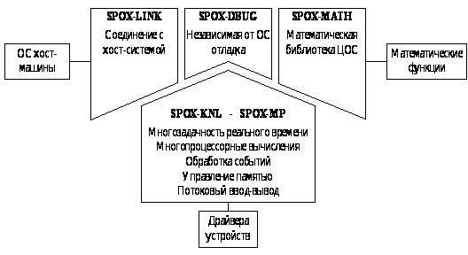 4.2 Обзор базовых ОСРВ для платформы TMS320C30 Для построения отказоустойчивой системы реального времени на базе процессора TMS320C30 необходимы базовые механизмы и средства, которые были перечислены в главе 1. В настоящее время существует достаточно много базовых ОСРВ для процессоров серии TMS320. Качественно они мало чем отличаются друг от друга, различия могут возникать из-за специфики применения этих ОСРВ. Приведем характеристики одной из самых известных ОСРВ, переносимых на TMS320C30. Операционная система SPOX. SPOX поддерживает несколько различных вариантов архитектур: