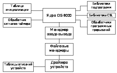Рис. 1.4. Структура операционной системы OS-9 Ядро обеспечивает основной системный сервис, включая управление процессами и распределение ресурсов. Основные характеристики: