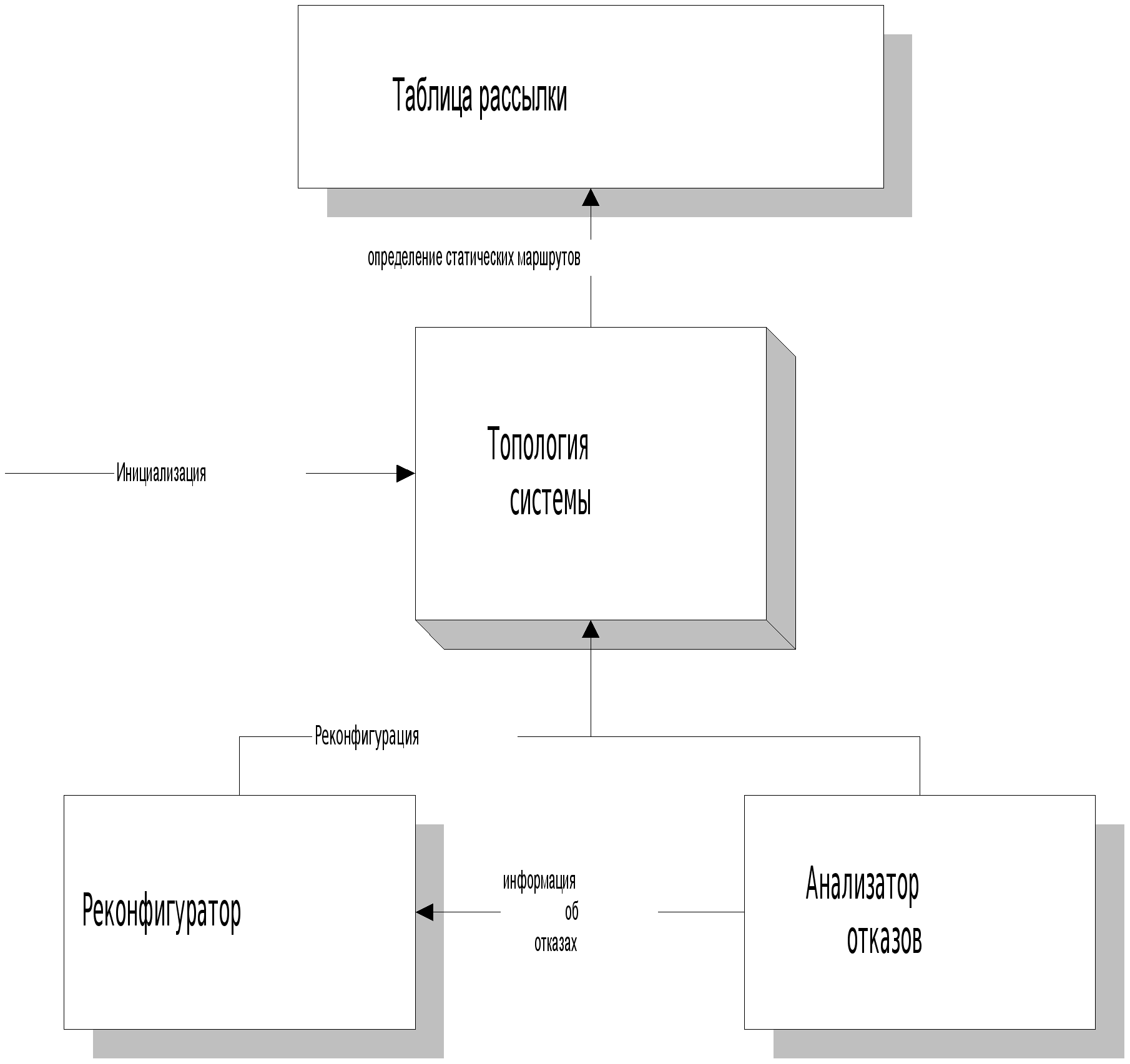 При инициализации требуется исходная топология системы. Таким образом, модуль маршрутизации можно представить в виде следующей упрощенной схемы: