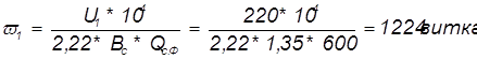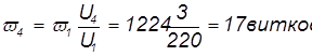 3.3.8 Принимаем для первичной и вторичной обмоток провод ПЭВ-1 со следующими данными /13/: а) диаметры проводов без изоляции d1=0,53 мм; d2=0,5 мм; d3=0,6 мм; d4=0,6 мм; б) диаметры проводов с изоляцией dи1=0,58 мм; dи2=0,55 мм; dи3=0,65 мм; dи4=0,65 мм. Определяем число витков первичной и вторичной обмоток, приняв магнитную индукцию сердечника Bc=1,35 Тл /13/: