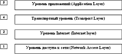 Рисунок 1.2 В этой схеме на уровне доступа к сети располагаются все протоколы доступа к физическим устройствам. Выше располагаются протоколы межсетевого обмена IP, ARP, ICMP. Еще выше основные транспортные протоколы TCP и UDP, которые кроме сбора пакетов в сообщения еще и определяют какому приложению необходимо данные отправить или от какого приложения необходимо данные принять. Над транспортным уровнем располагаются протоколы прикладного уровня, которые используются приложениями для обмена данными. Базируясь на классификации OSI (Open System Integration) всю архитектуру протоколов семейства TCP/IP попробуем сопоставить с эталонной моделью (рисунок 1.3). Прямоугольниками на схеме обозначены модули, обрабатывающие пакеты, линиями - пути передачи данных. Прежде чем обсуждать эту схему, введем необходимую для этого терминологию. Драйвер - программа, непосредственно взаимодействующая с сетевым адаптером. Модуль - это программа, взаимодействующая с драйвером, с сетевыми прикладными программами или с другими модулями. Схема приведена для случая подключения узла сети через локальную сеть Ethernet, поэтому названия блоков данных будут отражать эту специфику. Схема модулей, реализующих протоколы семейства TCP/IP в узле сети