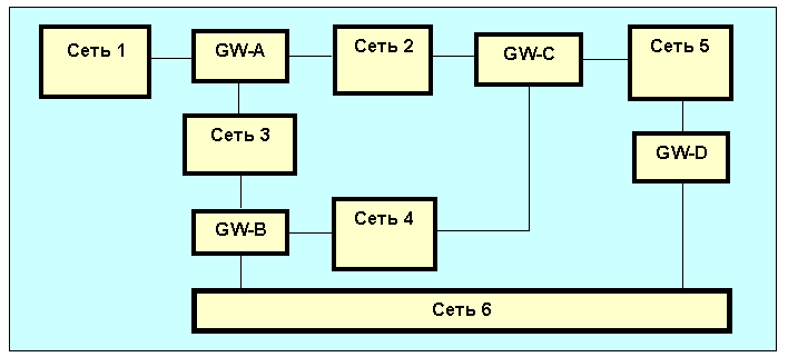 Маршрут к сети ведет к сети, входящей в объединенную сеть и имеющей указанный код (идентификатор).