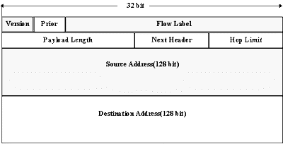 Рисунок 1.13 Заголовок IPv6 В этом заголовке поле "версия" - номер версии IP, равное 6. Поле "приоритет" может принимать значения от 0 до 15. Первые 8 значений закреплены за пакетами, требующими контроля переполнения, например, 0 - несимвольная информация; 1 - информация заполнения (news), 2 - не критичная ко времени передача данных (e-mail); 4 - передача данных режима on-line (FTP, HTTP, NFS и т.п.); 6 - интерактивный обмен данными (telnet, X); 7 - системные данные или данные управления сетью (SNMP, RIP и т.п.). Поле "метка потока" предполагается использовать для оптимизации маршрутизации пакетов. В IPv6 вводится понятие потока, который состоит из пакетов. Пакеты потока имеют одинаковый адрес отправителя и одинаковый адрес получателя и ряд других одинаковых опций. Подразумевается, что маршрутизаторы будут способны обрабатывать это поле и оптимизировать процедуру пересылки пакетов, принадлежащих одному потоку. В настоящее время алгоритмы и способы использования поля "метка потока" находятся на стадии обсуждения. Поле длины пакета определяет длину следующей за заголовком части пакета в байтах. Поле "следующий заголовок" определяет тип следующего за заголовком IP-заголовка. Заголовок IPv6 имеет меньшее количество полей, чем заголовок IPv4. Многие необязательные поля могут быть указаны в дополнительных заголовках, если это необходимо. Поле "ограничение переходов" определяет число промежуточных шлюзов, которые ретранслируют пакет в сети. При прохождении шлюза это число уменьшается на единицу. При достижении значения "0" пакет уничтожается. После первых 8 байтов в заголовке указываются адрес отправителя пакета и адрес получателя пакета. Каждый из этих адресов имеет длину 16 байт. Таким образом, длина заголовка IPv6 составляет 48 байтов. После 4 байтов IP-адреса стандарта IPv4, шестнадцать байт IP-адреса для IPv6 выглядят достаточными для удовлетворения любых потребностей Internet. Не все 2128 адресов можно использовать в качестве адреса сетевого интерфейса в сети. Предполагается выделение отдельных групп адресов, согласно специальным префиксам внутри IP-адреса, подобно тому, как это делалось при определении типов сетей в IPv4. Так, двоичный префикс "0000 010" предполагается закрепить за отображением IPX-адресов в IP-адреса. В новом стандарте выделяются несколько типов адресов: unicast addresses - адреса сетевых интерфейсов, anycast addresses - адреса не связанные с конкретным сетевым интерфейсом, но и не связанные с группой интерфейсов и multicast addresses - групповые адреса. Разница между последними двумя группами адресов в том, что anycast address это адрес конкретного получателя, но определяется адрес сетевого интерфейса только в локальной сети, где этот интерфейс подключен, а multicast-сообщение предназначено группе интерфейсов, которые имеют один multicast-адрес. Пока IPv6 не стал злобой дня, нет смысла углубляться в форматы новых IP-адресов. Отметим только, что существующие узлы Internet будут функционировать в сети без каких-либо изменений в их настройках и программном обеспечении. IPv6 предполагает две схемы включения "старых" адресов в новые. Предполагается расширять 4-х байтовый адрес за счет лидирующих байтов до 16-и байтового. При этом, для систем, которые не поддерживают IPv6, первые 10 байтов заполняются нулями, следующие два байта состоят из двоичных единиц, а за ними следует "старый" IP-адрес. Если система в состоянии поддерживать новый стан