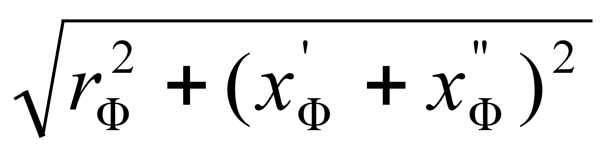 S, мм2: 70 – 1,6 мм; 25 – 1,4 мм; 35 – 1,4 мм; 10 – 1,2 мм; Т.о. d1 = 39,9 – 4,2 – 1,6 – 1,4 – 9,4 –5,6 = 17,6 мм; d2 = 30,4 – 4,2 – 1,4 – 1,2 – 6,7 – 3,6 = 13,4 мм. Для третьего участка d определяется вычитанием радиуса провода из радиуса водогазопроводной трубы: d3 = 19,1 / 2 – 0,9 = 8,7 мм. Тогда хф.м1’ = хн.м1’ = 0,145 lg 17,6 0,23 = 0,0416 Ом; хф.м2’ = хн.м2’ = 0,145 lg 13,4 0,075 = 0,0122 Ом; хф.м3’ = хн.м3’ = 0,145 lg 8,7 0,05 = 0,0068 Ом. хф.м’ = хн.м’ = 0,0606 Ом. Внешние индуктивные сопротивления самоиндукции определяются по формуле: хф.L’ = хL’ l; где - хL’ погонное индуктивное сопротивление самоиндукции, Ом/м. Значения хL’ выбираем для каждого участка по таблице 2 (стр.13 [12]). хф.L1’ = 0,09 0,23 = 0,0207 Ом, хф.L2’ = 0,068 0,075 = 0,0051 Ом, хф.L3’ = 0,03 0,05 = 0,0015 Ом, хф.L’ = 0,0273 Ом. хн.L1’ = 0,068 0,23 = 0,0156 Ом, хн.L2’ = 0,03 0,075 = 0,0023 Ом, хн.L3’ = 0,138 0,05 = 0,0069 Ом, хн.L’ = 0,0248 Ом. Суммарные внешние индуктивные сопротивления: хф’ = 0,0606 – 0,0273 = 0,0333 Ом, хн’ = 0,0606 – 0,0248 = 0,0358 Ом. 3.8. Определим внутренние индуктивные сопротивления: хф1-2” = хн1-2” = 0,0157 l2 = 0,0048 Ом (l2 = 0,23 + 0,075 = 0,305 км), хф3” = 0,0157l3 0,05 = 0,0008 Ом, хн3” = 0,6rн3 = 0,06 0,1057 = 0,0634 Ом, хф” = 0,0056 Ом, хн” = 0,0682 Ом 3.9. Находим полное сопротивление фазного и нулевого проводов: