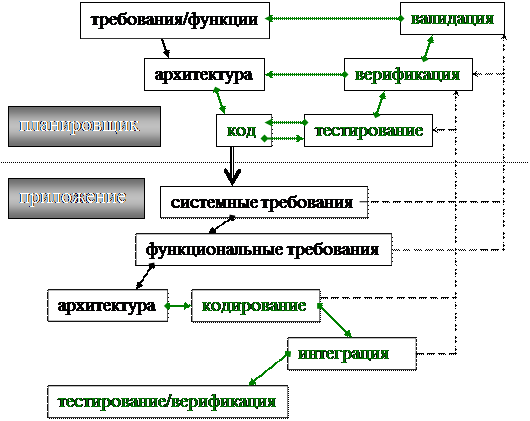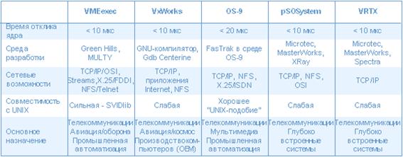 Диаграмма 1. Этапы жизненного цикла разработки. 1. Обзор требований проблемной области. 1.1. Особенности систем реального времени. Для начала стоит дать определение операционных систем реального времени. Оно взято из [13]. Данное определение не является классическим, однако обладает тем преимуществом, что позволяется в общих чертах представить себе отличия ОС, рассматриваемых в данной работе от других аналогичных программ. Операционные системы реального времени (ОС РВ) — управляющее ПО особого типа, часто используемое для организации работы встроенных компьютерных приложений, для которых характерны ограниченность ресурсов памяти, невысокая производительность, а также требования гарантированного времени отклика, высокого уровня готовности и наличия средств автомониторинга. А теперь рассмотрим упомянутое в определении более подробно. 1.1.1. Ограниченное время ответа. По сути, система реального времени - это аппаратно-программный комплекс, реагирующий в предсказуемые времена на непредсказуемый поток внешних событий. Это означает, что: · Она должна успеть отреагировать на событие, произошедшее на объекте, в течение времени, критического для этого события (meet deadline). Величина критического времени для каждого события определяется объектом и самим событием, и, естественно, может быть разной, но время реакции системы должно быть предсказано (вычислено) при создании системы. Отсутствие реакции в предсказанное время считается для СРВ ошибкой. · Система должна успевать реагировать на одновременно происходящие события. Даже если два или больше внешних событий происходят одновременно, система должна успеть среагировать на каждое из них в течение интервалов времени, критического для этих событий. По последствиям выхода за пределы интервала СРВ делятся на мягкие и жёсткие. Системы жесткого реального времени не допускают никаких задержек реакции системы ни при каких условиях, так как: · результаты могут оказаться бесполезны в случае опоздания; · может произойти катастрофа в случае задержки реакции; · стоимость опоздания может оказаться бесконечно велика. Системы мягкого реального времени характеризуются тем, что задержка реакции не критична, хотя и может привести к увеличинию стоимости результатов и снижению производительности системы в целом. Основное отличие между системами жесткого и мягкого реального времени можно выразить так: система жесткого реального времени никогда не опоздает с реакцией на событие, система мягкого реального времени - не должна опаздывать с реакцией на событие. В таблице 3 приведены времена отклика для нескольких ОС РВ. 1.1.2. Статическая основа проектирования. Кроме того, применение операционных систем реального времени всегда конкретно. Если ОС общего назначения обычно воспринимается пользователями (не разработчиками) как уже готовый набор приложений, то операционная система реального времени служит только инструментом для создания конкретного аппаратно-программного комплекса реального времени. Для большинства СРВ предполагается, что основная часть обрабатываемых данных априорно известна. Поэтому наиболее широкий класс пользователей операционных систем реального времени - разработчики комплексов реального времени, люди проектирующие системы управления и сбора данных. Проектируя и разр