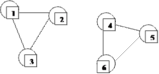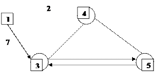 Решение: Если входные данные представить в виде матрицы смежности путей метрополитена, то при помощи алгоритма нахождения матрицы достижимости можно решить данную задачу. Выходные данные: это индексы столбцов матрицы достижимости k – той строки, которые в значении имеют 1. Исходные данные для данной задачи будут иметь вид: 6 {первая строка – это количество станций метро} 0 1 1 1 0 0 0 0 1 0 1 0 0 0 0 0 1 1 0 0 0 0 0 1 0 0 0 0 0 1 0 0 0 1 1 0 Пример выходных данных для данного примера: Введите пункт отправки – 4 5 6 (Текст программы см. Приложение 6) Роботы. Пункты с номерами 1,2,…,N (N<=50) связаны сетью дорог, длины которых равны 1. Дороги проходят на разной высоте и пересекаются только в пунктах. В начальный момент времени в некоторых пунктах находятся M роботов. Все роботы начинают двигаться с постоянной скоростью 1. Останавливаться или менять направление они могут только в пунктах. a) Требуется найти минимальное время Т1, через которое все роботы могут встретиться в одном пункте, указать этот пункт или сообщить, что такая встреча невозможна. b) Если встреча возможна, то найти время Т2<=T1, через которое встреча может произойти и вне пунктов. c) Пусть роботам запрещена какая – либо остановка, и скорость равна 1 или 2. При этих условиях найти минимальное время Т, через которое произойдет их встреча, или сообщить, что встреча невозможна. Примечания: · Для задачи (в) можно указать, что М равно 2 или 3. · При решении задач (а) и (б) данные о скоростях игнорируются. Решение. Идея решения основана на свойстве достижимости одной вершины из другой на графе. Данные о связях между пунктами будем хранить в массиве Alink[1..n,1..n], элементы которого равны 0 или 1. Значение Alink[i,j]=1 говорит о том, что между пунктами i и j есть дорога.