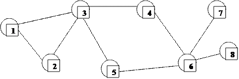 В двумерном массиве Aplace[1..n,1..m] для каждого робота значениями, равными единице, будем указывать те населенные пункты, в которых данный робот может находиться в данный момент времени. Поясним логику решения на примере. Четыре робота находятся в пунктах 1,2,7,8. Alink Aplace