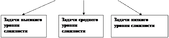 Задачи высокого уровня сложности: это задачи олимпиадного уровня, требующие глубокого знания предмета, а также комплексного подхода к решению задачи (Пример для нашего набора задач, задача о роботах, задача о комнатах музея). Задачи среднего уровня сложности: это задачи, требующие хороших знаний предмета и навыков применения знаний на практике, т.е в процессе решения задач (Пример: задача о семьях, задача о футболистах, задача про милицию и диспетчера). Задачи низкого уровня сложности: это задачи, для решения которых необходимы общие знания предмета и не требующие особых навыков применения знаний на практике, т.к. данные задачи направлены на формирование данных навыков.