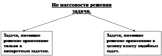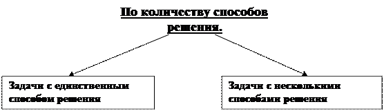 Задачи с единственным способом решения: это задачи, решить которые можно лишь одним способом, т.е. задачу нельзя рассмотреть с точки зрения различных тематик, таким образом, отсутствует выбор способа решения задачи (Пример: задача о футболистах и т.д.). Задачи с несколькими способами решения: это задачи, которые могут быть рассмотрены с точки зрения различных тематик и, таким образом, имеют более широкий спектр решений (Пример: задача о метрополитене и т.д.).