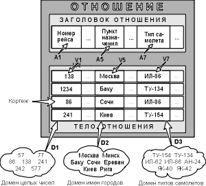 Реферат: Реляционные базы данных-правила формирования отношенийРеферат: Реляционные базы данных-правила формирования отношенийСодержаниеВведениеГлава 1. Основные понятия БД и СУБД ………………………..……….51.1 Данные и ЭВМ……………………………………………...…..…..51.2 Архитектура СУБД………………………………………...…….…71.3 Модели данных…………………………………………………..…10Глава 2. Инфологическая модель данных "Сущность-связь"……….…122.1 Основные понятия………………………………………………...….122.2 Характеристика связей и язык моделирования………………….…142.3 Классификация сущностей…………………………………………..162.4 Первичные и внешние ключи………………………………………..192.5 Ограничения целостности………………………………………...….23Глава 3. Реляционный подход………………………………………….…253.1 Реляционная структура данных……………………………...………253.2 Реляционная база данных……………………………………...……..283.3 Манипулирование реляционными данными…………………….….30ЗаключениеСписок используемой литературыВведениеОсновные идеи современной информационной технологии базируются на концепции, согласно которой данные должны быть организованы в базы данных с целью адекватного отображения изменяющегося реального мира и удовлетворения информационных потребностей пользователей. Эти базы данных создаются и функционируют под управлением специальных программных комплексов, называемых системами управления базами данных (СУБД). Увеличение объема и структурной сложности хранимых данных, расширение круга пользователей информационных систем привели к широкому распространению наиболее удобных и сравнительно простых для понимания реляционных (табличных) СУБД. Для обеспечения одновременного доступа к данным множества пользователей, нередко расположенных достаточно далеко друг от друга и от места хранения баз данных, созданы сетевые мультипользовательские версии БД основанных на реляционной структуре. В них тем или иным путем решаются специфические проблемы параллельных процессов, целостности (правильности) и безопасности данных, а также санкционирования доступа. Задачами данной работы являются: - дать основные понятия баз данных, описать архитектуру СУБД, модели данных; - раскрыть модель сущность-связь, описать характеристику связей, классификацию сущностей, структуру первичных и внешних ключей, определить понятие целостности данных; - описать реляционную структуру данных, реляционные базы данных и способы манипулирования ими. Глава 1. Основные понятия БД и СУБД1.1 Данные и ЭВМВосприятие реального мира можно соотнести с последовательностью разных, хотя иногда и взаимосвязанных, явлений. С давних времен люди пытались описать эти явления (даже тогда, когда не могли их понять). Такое описание называют данными. Традиционно фиксация данных осуществляется с помощью конкретного средства общения (например, с помощью естественного языка или изображений) на конкретном носителе (например, камне или бумаге). Обычно данные (факты, явления, события, идеи или предметы) и их интерпретация (семантика) фиксируются совместно, так как естественный язык достаточно гибок для представления того и другого. Примером может служить утверждение "Стоимость авиабилета 128". Здесь "128" – данное, а "Стоимость авиабилета" – его семантика. Нередко данные и интерпретация разделены. Например, "Расписание д