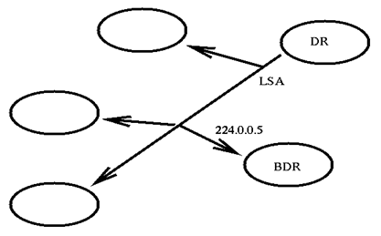 DR рассылает свои LSA всем "своим" посылая multicast по 224.0.0.5 Пример: --------------------------------------------------------------- Router# debug ip osfp events Router (config-if)# shutdown ! интерфейс "упал"