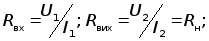 5) Вхідний і вихідний опір підсилювача: Підсилювач можна розглядати як активний чотирьохполюсник, до входів якого підключені джерело вхідного сигналу і навантаження. Джерело вхідного сиганлу має вхідний опір. Зі сторони виходу підсилювач представлений у вигляді генератора напруги з ЕРС і внутрішнім опором. Звідси: