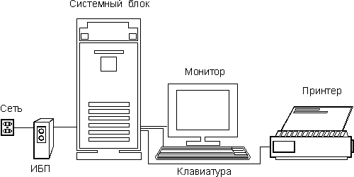 Из рисунка (рис 1) видно, что компьютер составлен из нескольких физических устройств, каждое из которых подключено к одному блоку, называемому системным. Если рассуждать логически, то ясно, что он играет роль некоторого координирующего устройства. Давайте заглянем внутрь системного блока (не нужно пытаться проникнуть внутрь монитора — там нет ничего интересного, к тому же это опасно): открываем корпус и видим какие-то платы, блоки, соединительные провода. Чтобы понять их функциональное назначение, посмотрим на структурную схему типичного компьютера (рис. 2). Она не претендует на безусловную точность и имеет целью лишь показать назначение, взаимосвязь и типовой состав элементов современного персонального компьютера. Обсудим схему на рис. 2 в несколько нетрадиционном