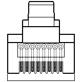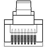 Гнезда устанавливаются в сетевые карты, хабы, трансиверы и другие устройства. Сам разъем представляет собой ряд (8 шт.) пружинящих контактов и выемку для фиксатора вилки. Если смотреть на гнездо со стороны контактов, причем они располагаются снизу, то отсчет идет справа налево. |