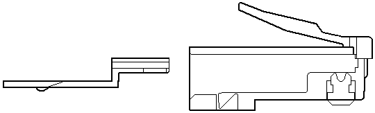 Вилка "RJ-45" похожа на вилку от импортных телефонов, только немного большего размера и имеет восемь контактов. |