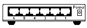 Задняя панель. 6-й порт используется для каскадирования и имеет обозначение "In" (в, внутрь, вход) |