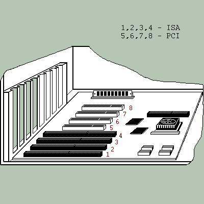 Сетевая карта вставляется в соответствующий разъем шины данных, расположенный на материнской плате. Если сетевая карта предназначена для шины данных ISA, то вставлять надо в любой свободный разъем ISA. Еще бывает PCI.