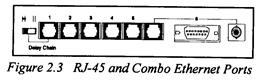 Комбинированные порты 6-8 Комбинированный порт поддерживает RJ-45, AUI или BNC тип соединений и обеспечивает авто-определение текущего типа используемой среды. Соединение с одним из трех портов будет автоматически запрещать два других. Если вам необходимо подключить волоконно-оптический кабель (10BASE-F), используйте соответствующее MAU подключение для AUI порта.