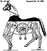 В 1983 году имела место еще одна очень интересная идея - совмещение лошади и велосипеда - The Mechanical Horse (рис.3). Принадлежит она Л. А. Риггу. Вслед за механизацией телеги или кареты изобретатель предложил модернизацию лошади. Интересно, почему проект заморозили? И действительно, во время первой мировой войны данные футуристические идеи стали реализоваться. Первым стало появление уже сконструированного и собранного механизма Walking Machine, показанного на рисунке. Данная машина передвигалась только с помощью большого количества ног, работающих практически по принципу гусеничного механизма... Другой вариант - это шагающий трактор, разработанный в это же время. Как мы можем видеть, сзади у механизма находятся две шагающие ноги, приводящие механизм в движение, а спереди - колеса. Получается телега наоборот. Это была первая реализация сочетания механических ног и колес в одной.