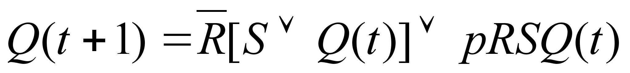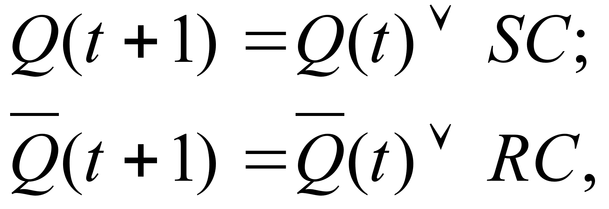 Пользуясь алгоритмом синтеза оптимального нейрона, получим простейший ФН, реализующий эту функцию, то есть схему RS-триггера, которая показана на рисунке 2-1б. Как видно, здесь вместо ФН получен ПЭ. Однако при технической реализации этот ПЭ требует больше компонентов (транзисторов и резисторов), чем ФН, показанный на рисунке 2-1а, так как ПЭ имеет три синаптических входа, а ФН - два (один синаптический вход требует четыре компонента). Элемент ИЛИ в ФН добавляет на синаптический вход всего один транзистор. Если полученную согласно (2-3) точечную диаграмму подвергать преобразованию типа Px1←→x1 – то получим новую точечную диаграмму, по которой, синтезируя минимальный нейрон, получим схему RS-триггера, показанную на рисунке 2-1в. Как видно, здесь уже требуется один МЭ «2 или более из 3». В этой схеме вход R работает по негативной логике, то есть логической единице соответствует низкий потенциал. Работу синхронного RS-триггера аналитически можно представить следующей системой функций: