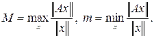 Здесь Умножение вектора х на матрицу А приводит к новому вектору Ах, норма которого может очень сильно отличаться от нормы вектора х. Область изменений может быть задана двумя числами